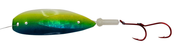 Designed for trolling, the dodging and weaving action of an Apex® creates strong vibrations in the water. Often, the erratic vibrations made by a wounded bait fish are the most enticing. The Apex® Lure duplicates these movements. Its contoured scoop front surface causes a rapid, side-to-side shaking action as it is trolled. The Apex will also dart violently from side to side and will spin from time to time.